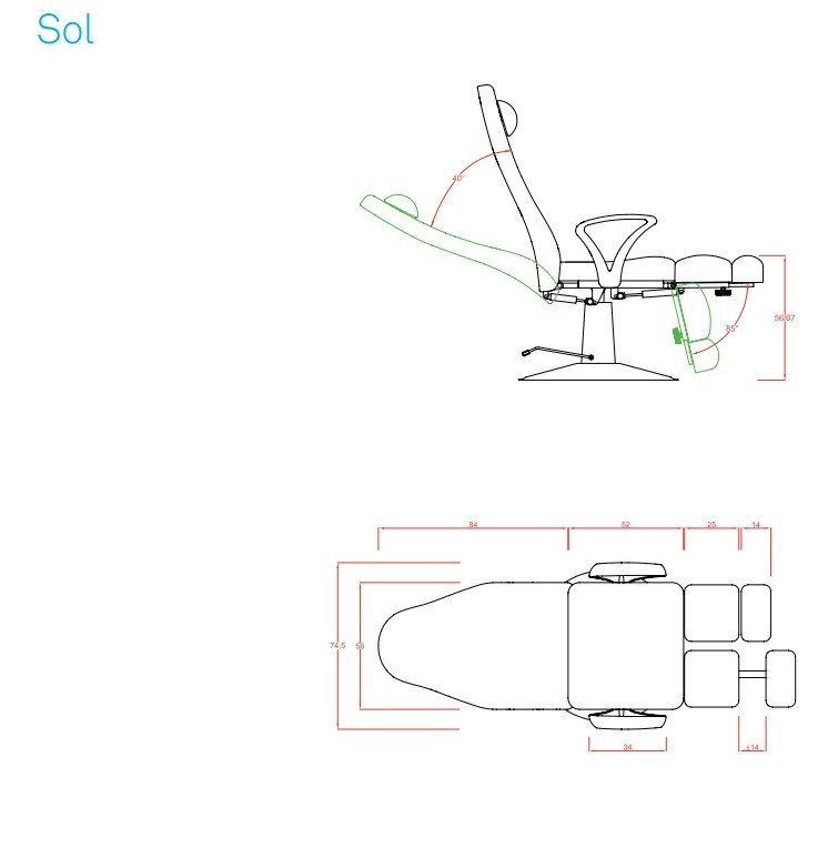 Obrotowy fotel do pielęgnacji stóp z bardzo stabilną chromowaną podstawą. Regulacja wysokości za pomocą pompy hydraulicznej z hamulcem. Oparcie i podnóżki regulowane bezstopniowo za pomocą sprężyny gazowej. Wysokiej jakości, biała, bezszwowa tapicerka z PV