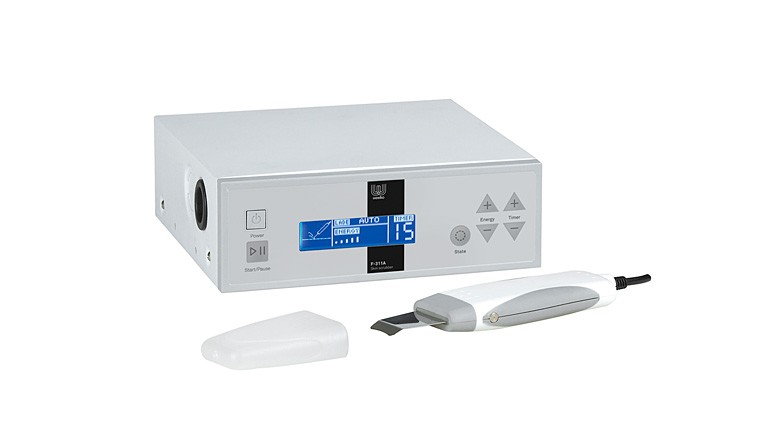 Urządzenie do profesjonalnego peelingu twarzy. Wyposażone w rączkę szpatułki jako aplikator oraz bransoletkę bezpieczeństwa.