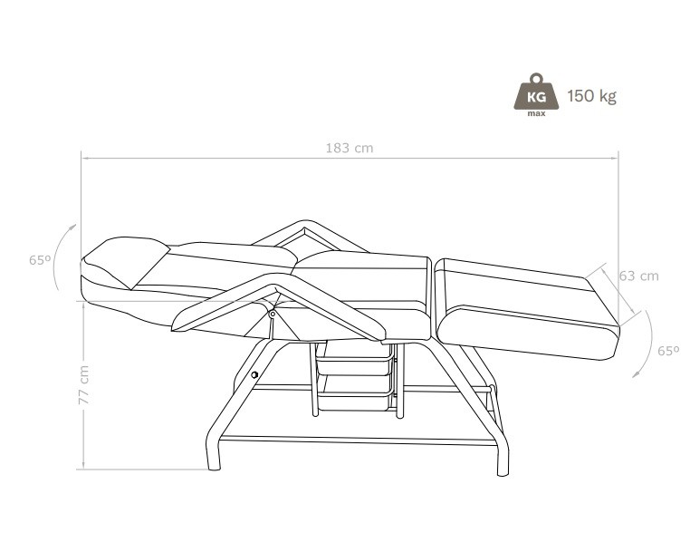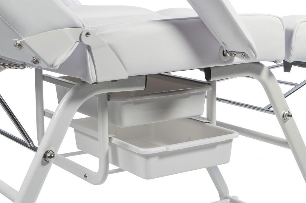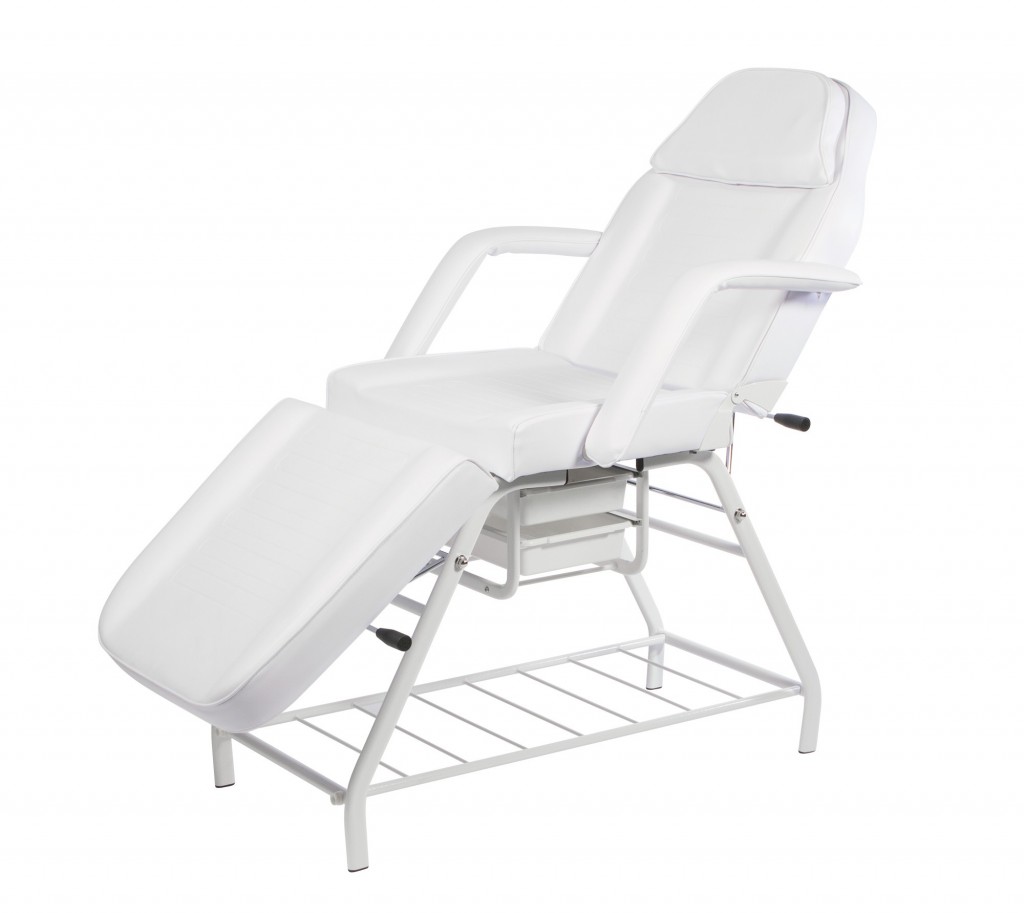 Fotel idealnie nadaje się do zabiegów kosmetycznych, takich jak: kosmetyki, makijaż, przedłużanie rzęs i masaż.