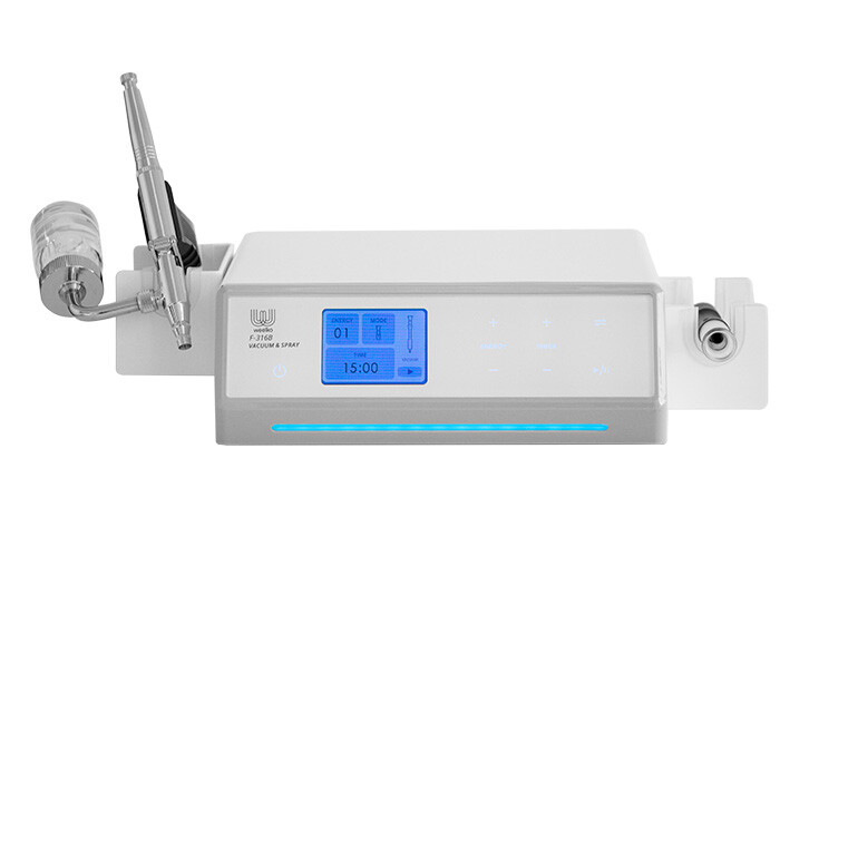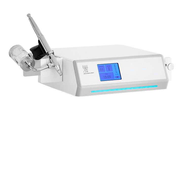 Profesjonalne urządzenie kosmetyczne o podwójnej funkcji do zabiegów na twarz, które łączy w sobie funkcję ssania i natrysku. Urządzenie stymuluje mikrokrążenie, poprawia metabolizm skóry i ułatwia usuwanie zanieczyszczeń, dzięki czemu stanowi idealne uzupełnienie profesjonalnych zabiegów oczyszczania twarzy.
